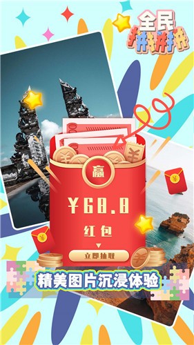 《全民拼拼拼红包版》是一款充满趣味与福利的拼图挑战游戏。游戏中设计了丰富多样的拼图关卡,每一关都有全新图案等待玩家挑战。通过灵活的思维和策略,玩家可以顺利完成更多任务,赢取丰厚红包奖励。多样化的玩法带来不同的挑战乐趣,让玩家体验全新的拼图内容。随着不断完成任务,玩家还能解锁更多精彩内容,自由选择参与各种玩法,收获更多红包奖励。