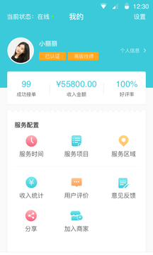 全新打造的服务者工作平台,包含智能派单、收入统计、技能提升等模块