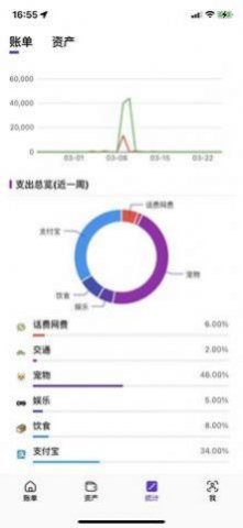 您可以查看统计图表,可以记录自己的支出和收入数据信息。