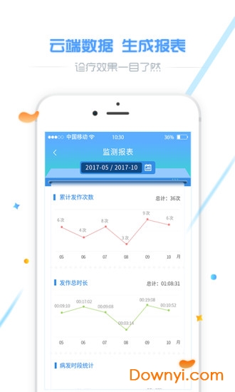 -统计分析病程记录:系统会自动分析用户的发作频率、持续时间等关键指标,生成多维度的统计图表。这些数据可以帮助医生更准确地评估病情严重程度和治疗效果,为制定个性化治疗方案提供依据。