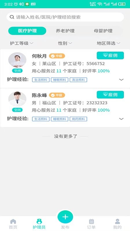 专业健康护理:平台汇聚了众多经验丰富的专业护理人员,他们都经过严格的专业培训和考核,在各类护理场景中都能提供最专业的服务,确保用户的健康得到科学规范的照料。