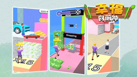 《幸福向前冲》最新版是一款充满欢乐的休闲跑酷游戏,玩家将化身为追逐财富的冒险者,怀揣钞票在赛道上奋力奔跑。沿途散落的钞票等待收集,但危机四伏的障碍物会夺走你的财富。巧妙运用钞票搭建天梯跨越障碍,灵活的操作能让你在赛道上走得更远。最终抵达终点时,手中积累的财富将成为衡量成功与否的标准,每一张钞票都象征着向幸福迈进的阶梯。简单易上手的玩法搭配魔性十足的闯关体验,让每位玩家都能享受这场财富与速度的狂欢。