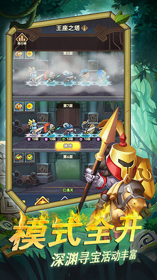 游戏提供多样化的日常玩法满足不同玩家需求。宝藏洞穴结合占矿与守矿双重玩法,考验玩家资源调配能力;王座之塔层层推进,挑战极限战力;无尽深渊双模式切换,带来截然不同的战斗体验。每日登录还能领取丰厚奖励,保证玩家资源充足,轻松培养心仪角色。