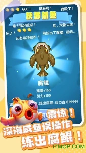 创新的合成玩法是本作的核心亮点,通过滑动手指将相同种类的小鱼合并,可以进化出各种造型搞笑的稀有鱼种。每种合成路线都充满惊喜,上百种形态各异的鱼类等待玩家发掘。这些呆萌可爱的沙雕鱼不仅外形逗趣,还拥有独特的属性和技能。