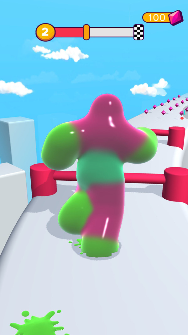 游戏采用简单易上手的操作方式,只需滑动屏幕即可控制粘液人跳跃和转向,但想要精通却需要反复练习。比赛过程中可以拾取加速道具、无敌护盾等增益效果,还能收集特殊道具干扰对手。最新版本新增了多人对战模式,支持4名玩家同场竞技,看谁能最先冲过终点线。游戏还加入了丰富的收集要素,玩家可以通过完成关卡获得金币,解锁稀有皮肤和特效。每日任务和成就系统让游戏保持持久的新鲜感,每次游玩都能获得不同的乐趣。