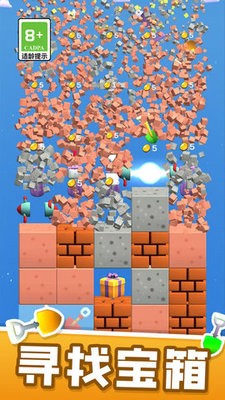 游戏最大的特色在于将合成玩法与挖矿挑战完美结合。玩家需要巧妙应对各种地形障碍,包括坚硬的花岗岩层、流动的地下暗河等,通过合理使用不同属性的铲子来突破阻碍。随着合成等级的提升,玩家可以解锁特殊能力的铲子,如可以穿透岩石的钻石铲、能够挖掘流沙的网状铲等。游戏还设计了丰富的成就系统,完成特定挑战可获得稀有装饰和强力道具。多人合作模式允许玩家组队攻克高难度矿区,分享资源与收益。每日任务和限时活动为游戏增添了更多可玩性。