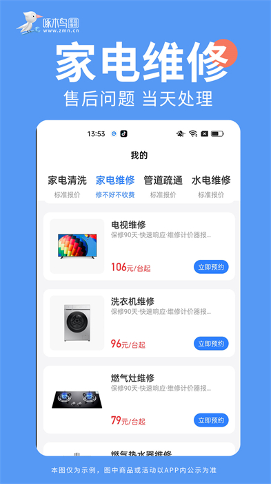 啄木鸟家庭维修提供包括家电维修、手机电脑维修、管道疏通、水电维修、开锁换锁、防水漏补、墙面翻新、家居门窗、家电清洗、数码维修、厨卫改造等服务范围,具体涵盖三百多种维保服务品类。啄木鸟家庭维修旨在为用户提供优质的生活解决方案,为300多个城市的5000多万用户提供了便捷、透明和值得信赖的家庭服务。用户只需要在手机上一键预约,服务随叫随到,线上和电话客服帮您解决问题。