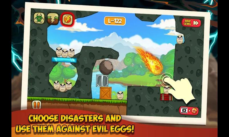 1、您将需要掌握一些技能才能赢得这场史诗般的鸡蛋大战。每种自然灾害都有独特的操控技巧,例如飓风需要划出螺旋轨迹增强威力,而陨石则需计算抛物线落点。通过20小时的专业动作捕捉,所有灾难动画都呈现电影级表现力。