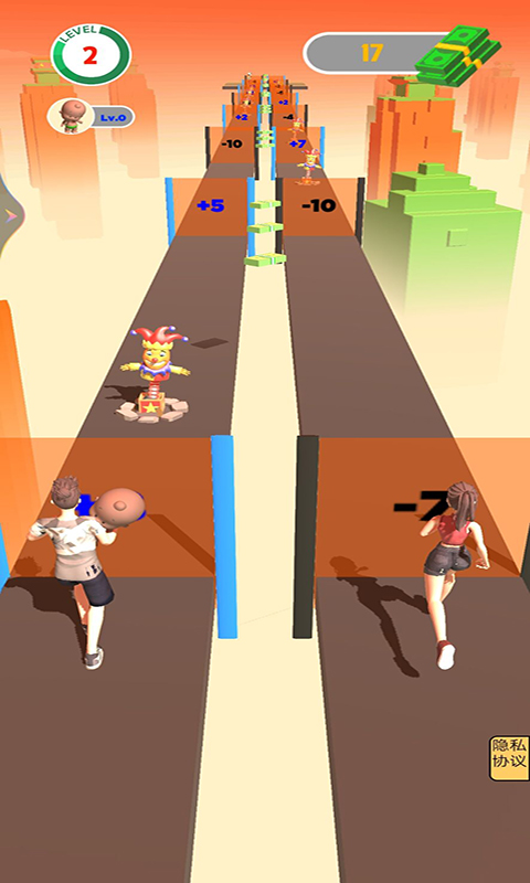 游戏最具特色的就是"体型变化系统",玩家控制的角色会随着游戏进程不断改变体型。在跑酷过程中,你需要平衡饮食和运动,避免暴饮暴食导致肥胖,也要防止过度运动造成体力透支。游戏场景设计充满创意,从幼儿园的彩色积木到写字楼的玻璃幕墙,每个关卡都独具特色。障碍物设计也暗藏玄机,快餐代表诱惑,健身器材代表机遇,玩家需要快速判断利弊。此外,游戏还加入了天气系统和昼夜变化,让跑酷体验更加真实多变。