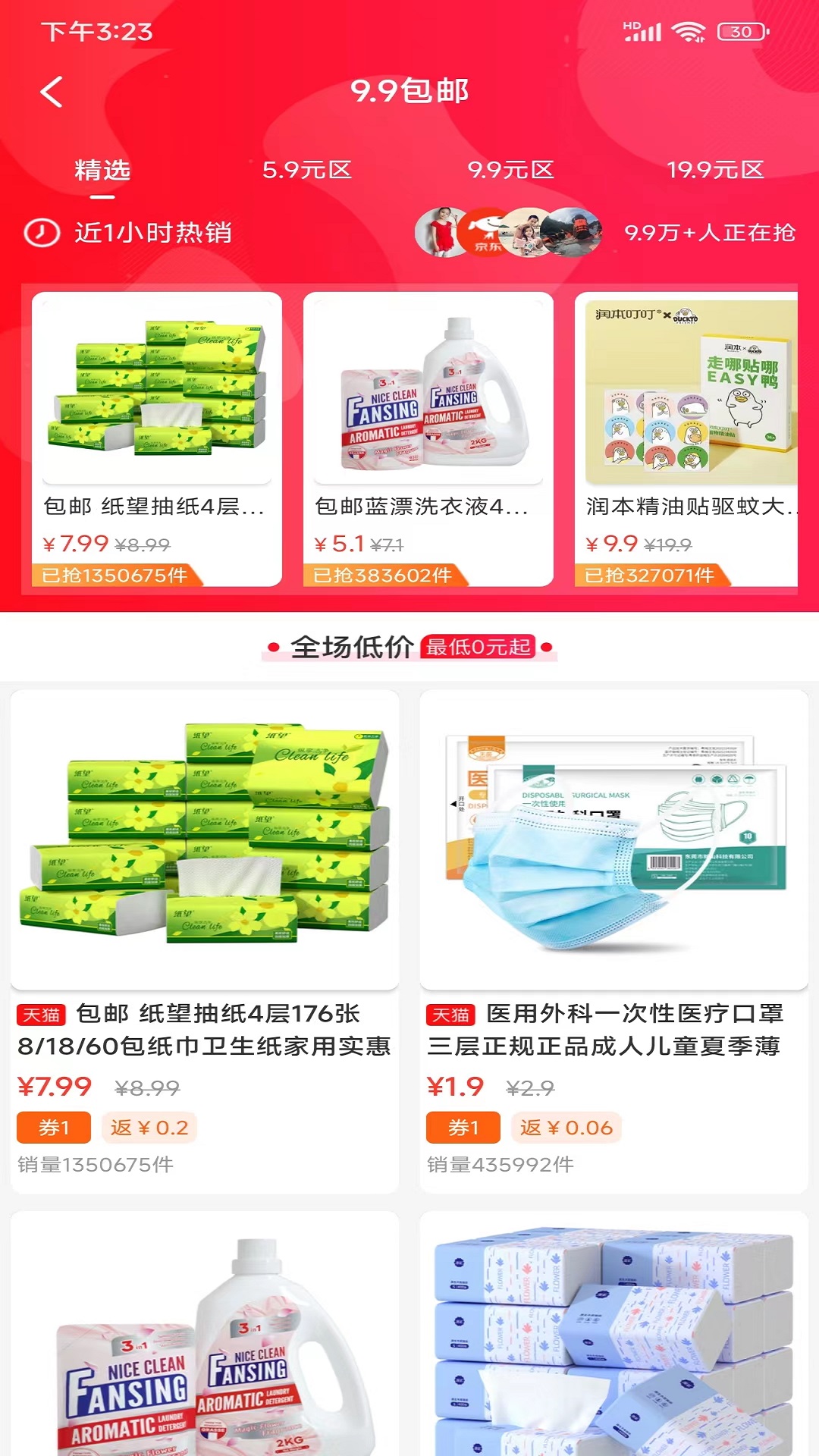 2、9.9包邮专区商品种类丰富,从家居小物到个人护理应有尽有。这些商品都经过严格筛选,确保低价不低质。专区每日更新,让您天天都能淘到惊喜。