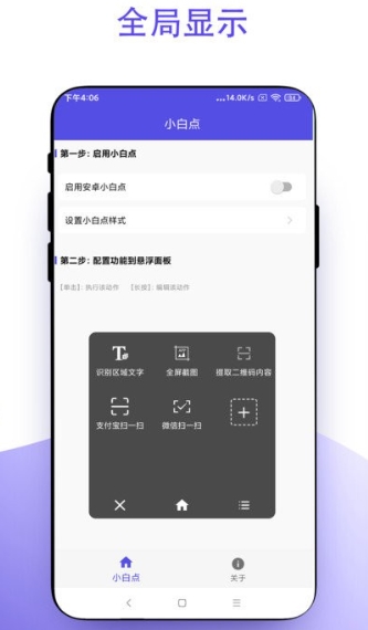 首次使用时,只需简单几步即可完成设置,小白点将常驻屏幕边缘,随时待命。软件界面设计简洁明了,所有功能一目了然,操作逻辑符合直觉。完全免费的使用模式让用户无需担心额外费用,轻量级的设计确保不会拖慢手机速度。无论是日常使用还是紧急情况,小白点都能提供快速可靠的辅助功能。