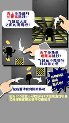 游戏的玩法非常简单直观,适合各个年龄段的玩家。向上滑动即可快速跳跃,帮助角色越过低矮的障碍物;向下滑动即可跳远,跨越更宽的距离;向左或向右滑动即可更改车道,灵活躲避突如其来的危险。随着游戏进行,你还可以解锁更多高级动作,如空中翻转、墙壁奔跑等。游戏采用渐进式难度设计,新手可以轻松上手,而高手也能找到挑战自我的机会。记住,在摩天大楼间穿梭时,保持冷静和精准的判断力是成功的关键。