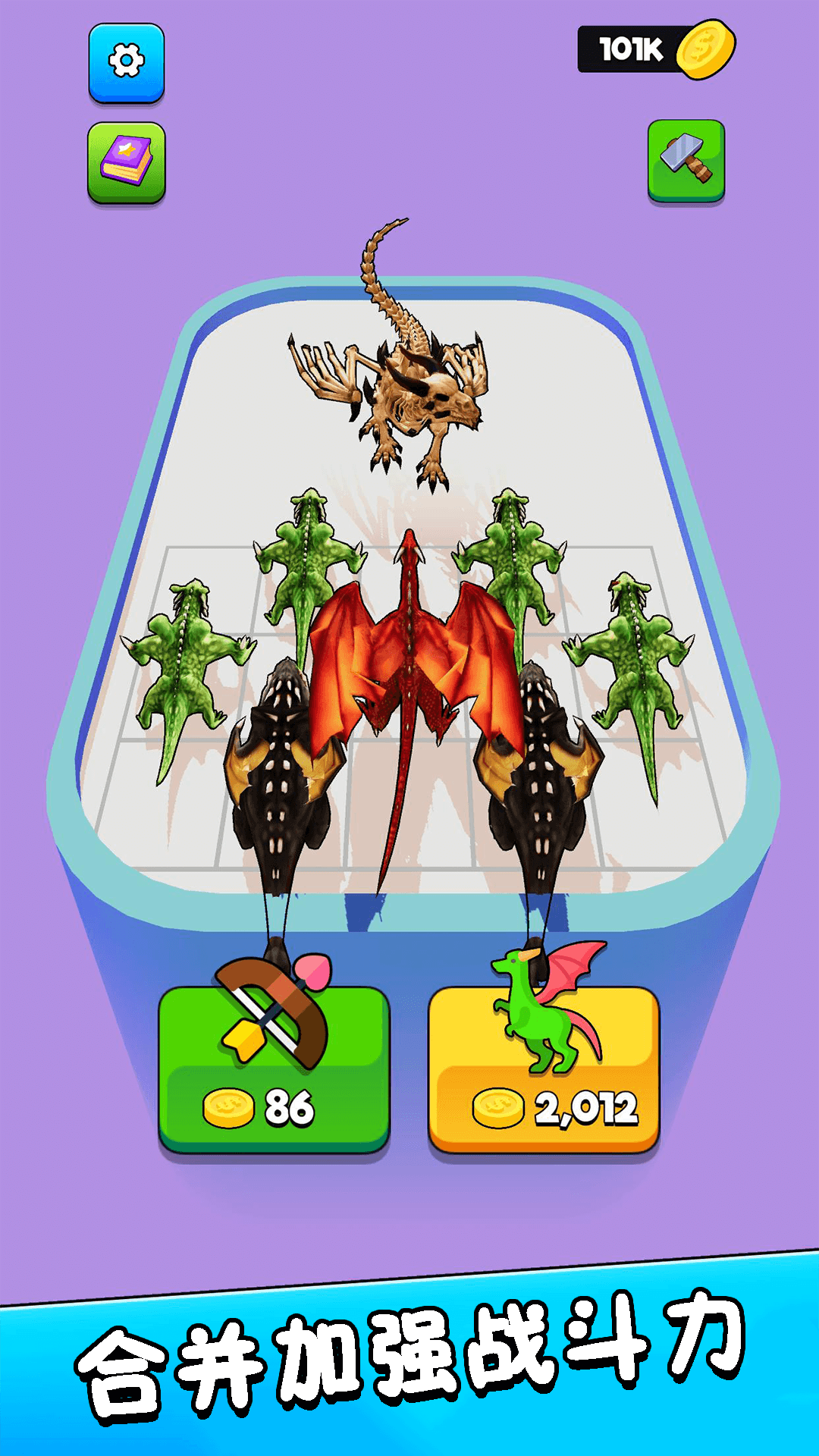 游戏最具特色的就是其独特的合并战斗机制。玩家需要通过手指在屏幕上划动,将两个相同等级的怪物进行合并,从而创造出更高级别的强力战士。这个系统不仅操作简单,而且充满了策略深度。你需要考虑何时合并、合并哪些怪物,以及如何搭配不同种类的怪物来形成最佳战斗阵容。随着游戏的进行,你将解锁更多种类的怪物,每种怪物都有其独特的属性和技能。比如,某些恐龙可能拥有强大的近战攻击力,而一些龙族则可能擅长远程魔法攻击。合理利用这些特性,才能在面对不同敌人时占据优势。