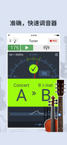 调音器和节拍器最新版专业调音器是一个手机调谐和节奏的工具,为广大音乐爱好者提供一款优秀的可拆卸式节拍器和调音器的功能体验,集成节拍器、调音器、录音机三个实用功能。