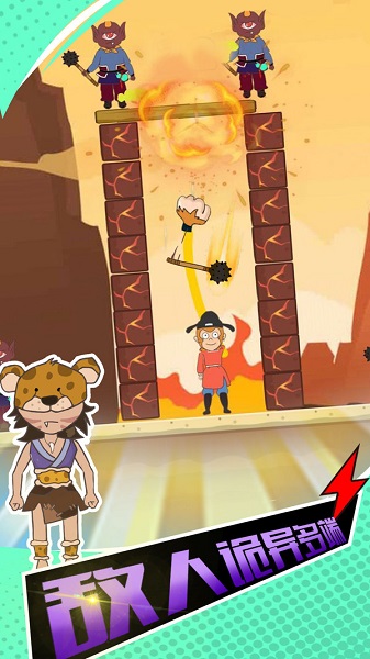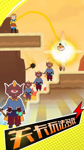 3、游戏打造了一个充满想象力的卡通西游世界,玩家可以操控孙悟空施展各种炫酷技能,在精心设计的关卡中横冲直撞,体验成为齐天大圣的快感。