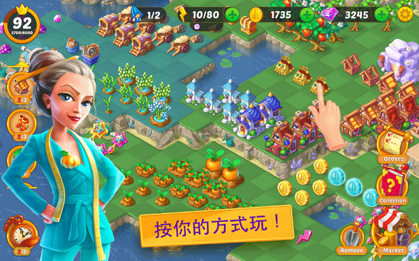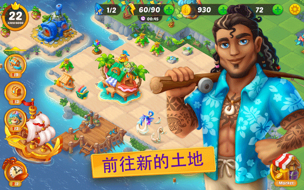 1、去不同的岛屿玩,有数百种不同的物品等待您使用。可以使用消除法和合并法来完成任务,这些玩法简单有趣,适合所有玩家。