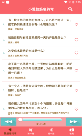小爱脑筋急转弯是一款专注教育服务的软件。为用户们提供有趣的脑筋急转弯,孩子们可以在课余时间里学习到有趣的知识内容,可以更轻松地学习接受知识内容。喜欢的来下载体验一下吧。