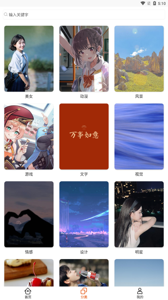 2、精片壁纸:从4K超清到创意手绘,满足不同用户的审美需求。支持按颜色、风格、主题等多维度筛选。独家签约摄影师作品专区,提供原创高质量壁纸资源,让您的手机与众不同。