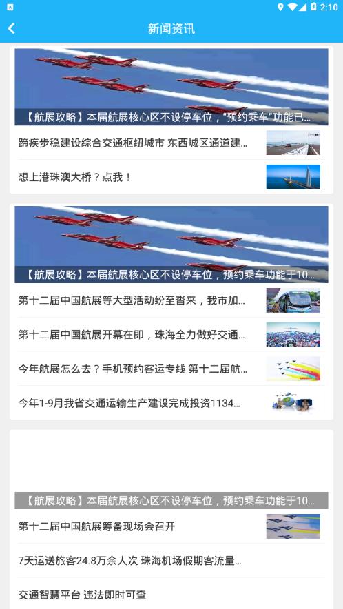 配合航展活动结束,暂时下线航展交通专线查询功能;2.重构了后台数据接口,显著提升查询响应速度;3.新增了停车场空位实时推送功能;4.修复了旧版本存在的GPS定位偏差问题;5.优化了夜间模式的显示效果。