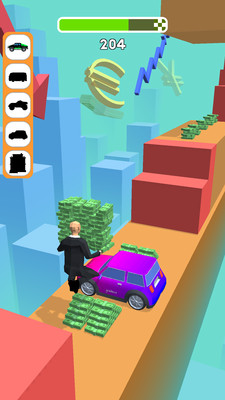 2、在前行的道路上面,会有各种的不同颜色出现,我们要按照任务的要求去进行。不同颜色的钞票代表不同分值,金色钞票价值最高但出现几率较低,玩家需要根据当前任务需求来制定收集策略。