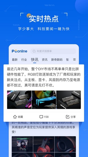 客户端每日更新大量IT行业资讯,包括产品评测、导购指南、市场行情等专业内容。对重大科技事件和行业展会进行全方位报道,帮助用户把握科技发展趋势。