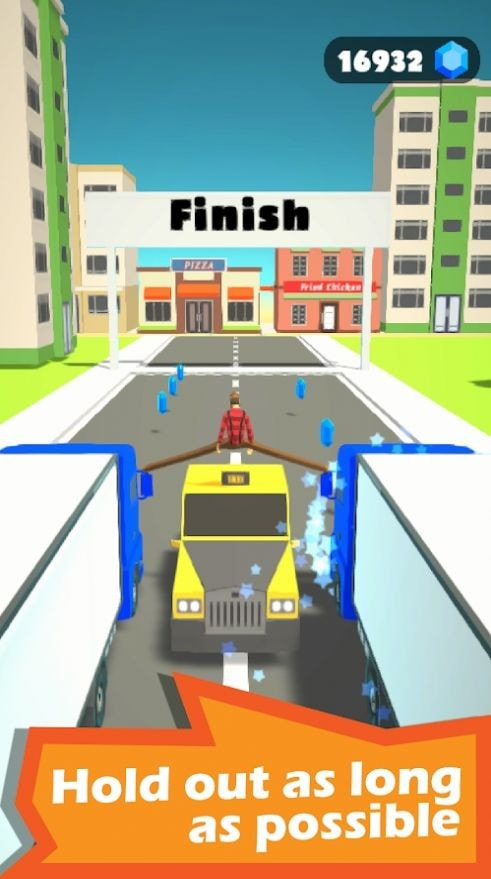 2、独创的"人形桥梁"系统让玩家可以将双腿架在两侧车辆上形成临时通道,这种独特的移动方式既考验反应速度又需要空间想象力,帮助角色在车水马龙中安全前进;
