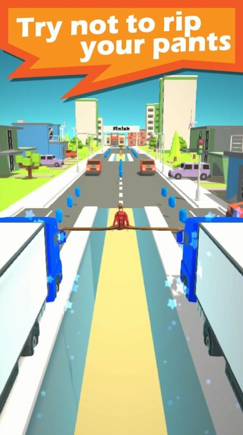 1、游戏最核心的特色在于劈腿通过障碍的设定,玩家需要根据实时路况调整双腿开合幅度,在疾驰的车辆缝隙中寻找生机,通过精准的时机把控一路冲刺直达终点;