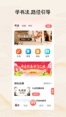 比较喜爱书法的用户,可以在这款软件里实时的进行书法知识学习:平台与多家书法协会合作,持续更新当代书法名家的创作视频和理论讲座。用户可通过"每日一字"等特色栏目,系统掌握书法演变历史和不同流派特点。