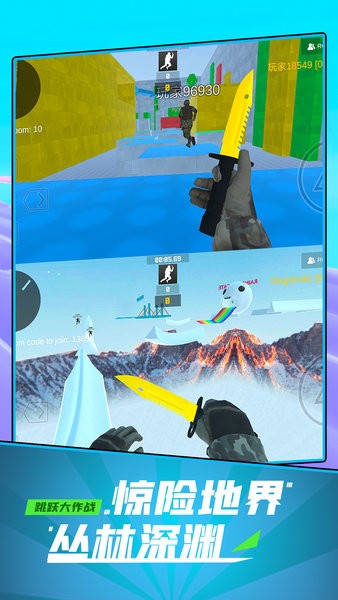 开发团队持续更新特殊跳跃玩法,如最近加入的"火箭跳跃"模式允许玩家利用爆炸反冲力飞跃障碍。双人合作玩法中,队友间可搭建人梯突破常规跳跃高度限制。