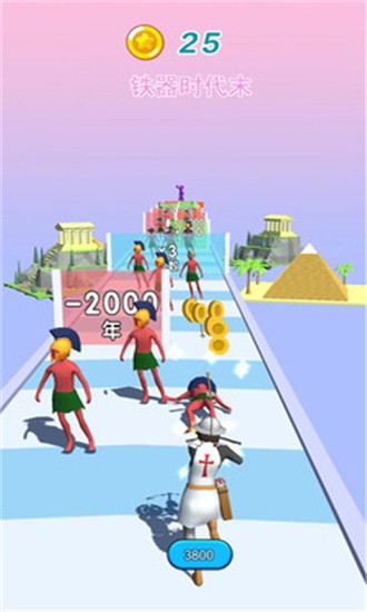 1、时空穿梭主题贯穿始终,玩家将经历从原始丛林到星际战场的七大文明纪元,每个时代都有符合当时特征的独特跑酷机制和视觉风格。