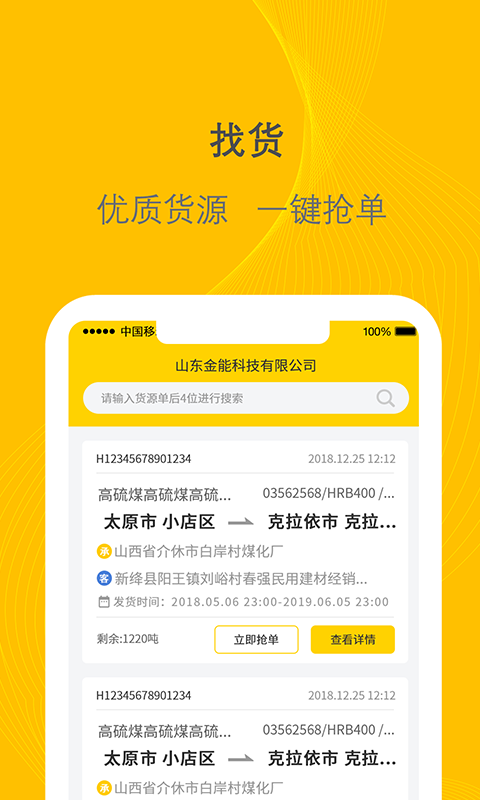 1、该平台提供全国范围内的多样化订单资源,涵盖各类货品运输需求,司机无需出门就能查看详细订单信息,包括货物类型、运输距离、运费标准等重要内容。