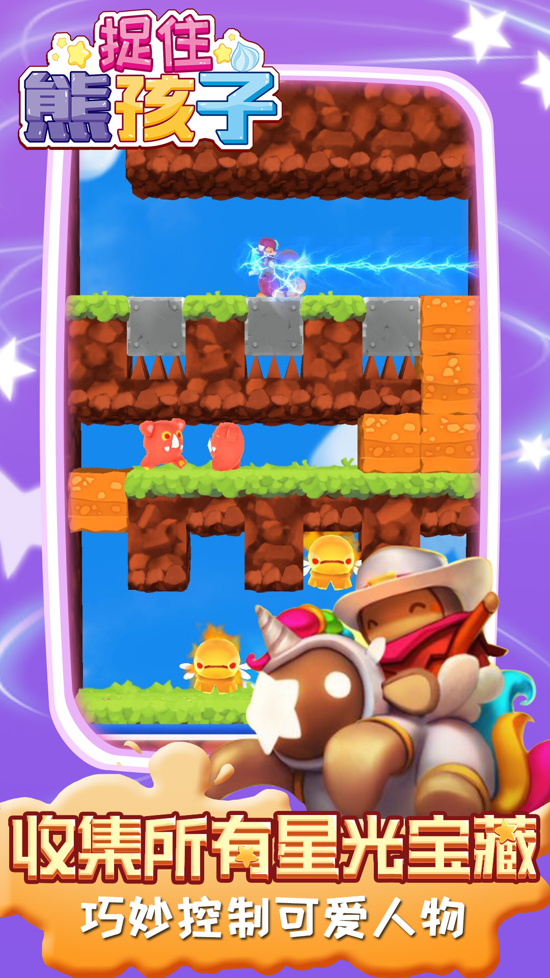 在《捉住熊孩子》中,玩家将踏上一段梦幻般的冒险旅程,面对各种奇特的敌人和障碍。游戏的核心玩法是操控熊孩子灵活移动,利用道具和技能跨越障碍,同时收集珍稀的星光宝藏。游戏的操作简单易上手,但想要精通却需要一定的技巧和策略。可爱的角色设计、精美的视觉效果以及多样化的游戏机制,为玩家提供了丰富而难忘的游戏体验。无论是解谜、跳跃还是战斗,每一关都充满惊喜,让玩家沉浸在这个充满想象力的世界中。