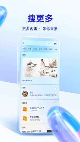 智慧搜索安卓版app是一款基于华为手机原生搜索功能打造的智能检索工具,它完美复刻了华为手机的快捷搜索体验。安装后,用户可通过桌面快捷入口快速启动搜索功能,实现全机内容的一站式检索。无论是本地应用、联系人、多媒体文件,还是云端存储的文档资料,都能通过关键词快速定位。更贴心的是,应用还整合了每日热点资讯推送功能,让用户在高效检索的同时,还能随时掌握时事动态。其简洁直观的界面设计和强大的搜索能力,让手机文件管理变得前所未有的轻松便捷。