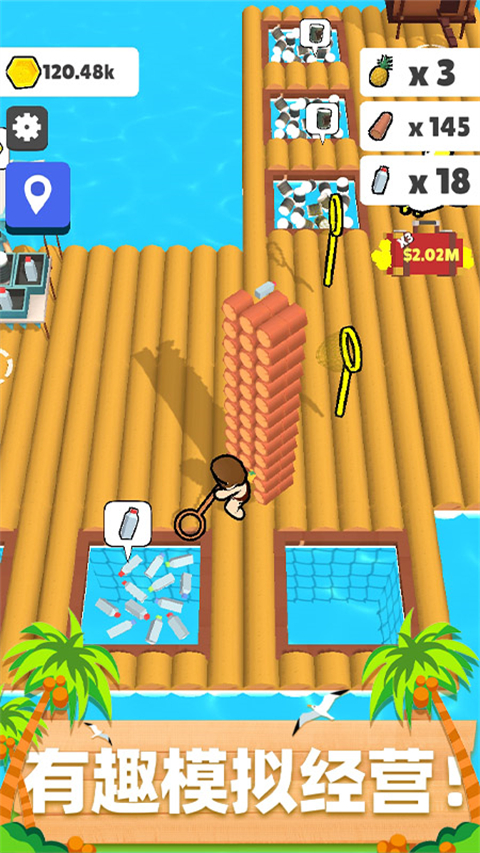 2、丰富的资源系统包含木材、蔬菜、鱼类、塑料等多种类型,每种资源都有独特用途。玩家可以体验从采集到加工的完整产业链,感受收集与养成的双重乐趣。
