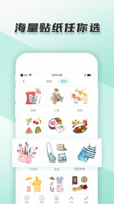 2、丰富素材:每周更新的素材库包含2000+手绘风贴纸、100+可编辑模板和30款正版商用字体,支持自定义颜色调节和图层混合模式,让创意不受限制。用户还能导入本地素材创建专属素材库。