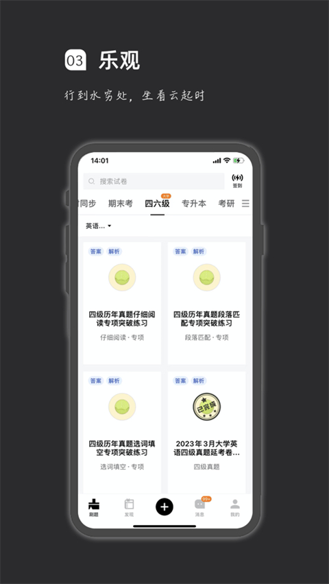 2.它支持多种考试类型,包括中小学、大学和职业资格考试,目前已覆盖K12全科、四六级、考研、公务员等300+考试门类。