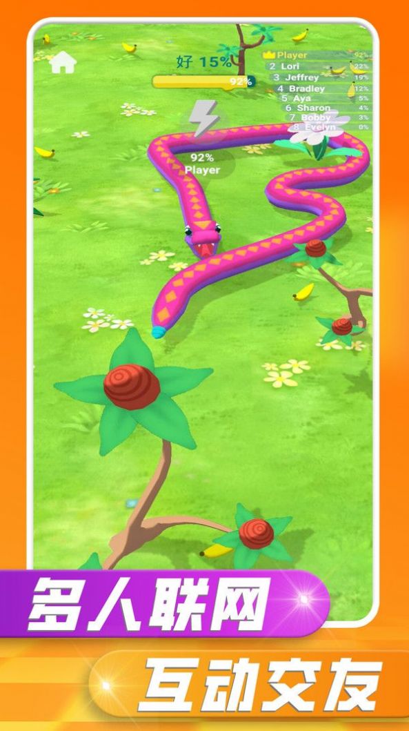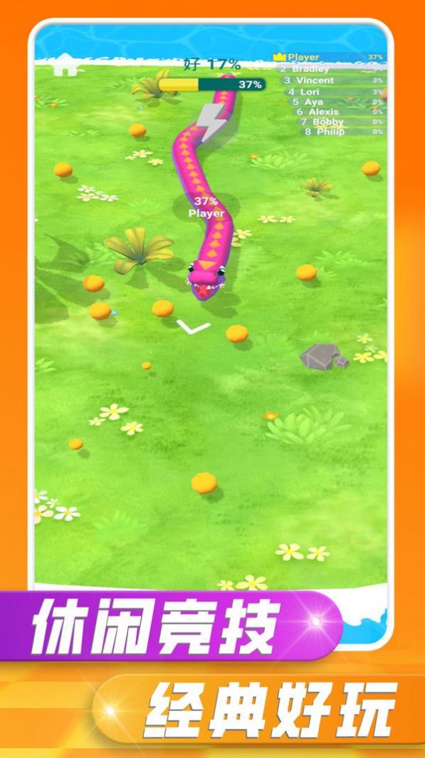 《贪吃蛇之战》是一款融合经典与创新的3D休闲竞技手游,将童年记忆中的贪吃蛇玩法升级为充满策略性的多人对抗体验。游戏采用细腻的3D建模技术,让每一条蛇的游动轨迹都充满动态美感。玩家只需通过简单的滑屏操作,就能操控灵动的蛇身穿梭于色彩斑斓的立体战场,在实时对抗中上演"螳螂捕蝉黄雀在后"的精彩戏码。无论是单人闯关的刺激,还是团队协作的默契,十余种特色模式都能让你找到专属乐趣,更有赛季排位系统等你来挑战极限!