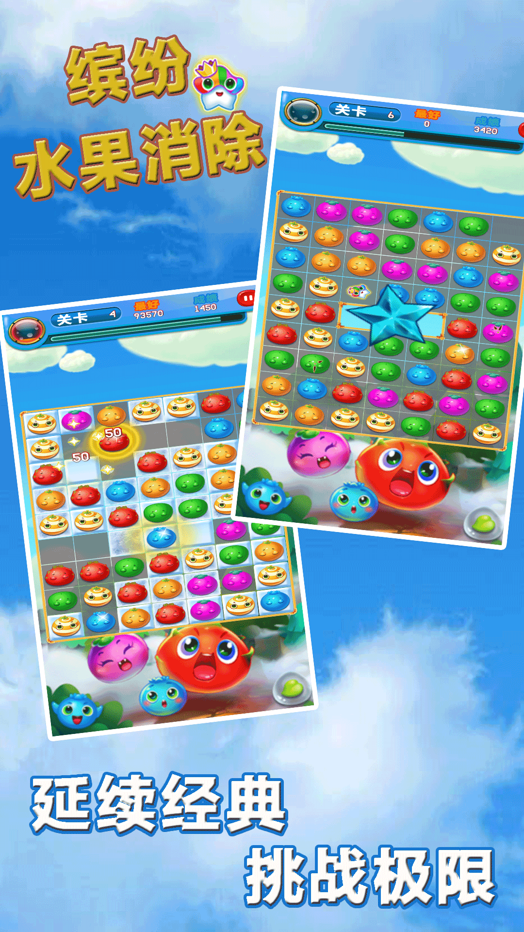 2、多类型消除关卡等你参与完成更多冒险探索。除了经典模式外,游戏还设有限时挑战、道具大师、水果收集等多种玩法模式。每周更新的主题活动带来全新游戏体验,参与活动还能获得限定奖励和稀有道具。