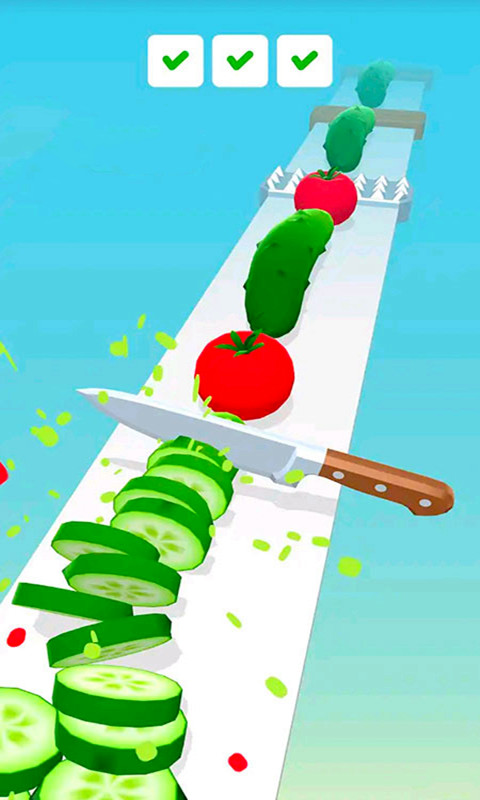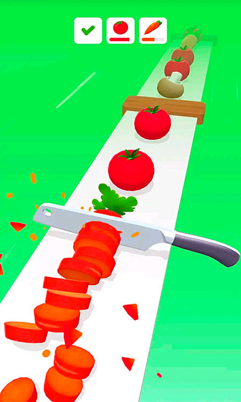 1、操作简单直观,只需滑动手指就能将水果切成薄片,最终完成切碎所有水果的任务目标。