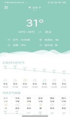 2、该软件帮助用户显示未来15天的天气,并可以显示更多的天气内容。除了基础的温度预报外,还提供降水概率、风速风向、气压变化等专业气象数据,满足不同用户的深度需求。