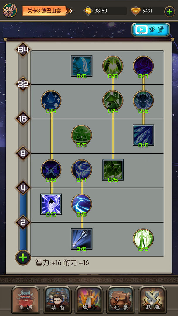 4、在每一关中的挑战,玩家能根据战斗的情况,将自己获取的天赋点进行设置。天赋系统分为攻击、防御、辅助三大方向,可根据战斗需求随时调整。