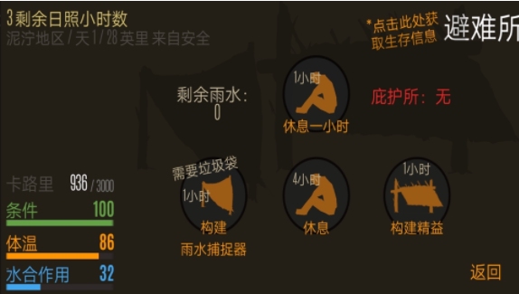 在生存过程中你需要更加合理的分配自己的时间,你需要在合适的时间完成不同生存挑战,等你体验。昼夜循环系统带来差异化玩法,白天适合外出探索收集资源,夜晚则要应对能见度降低和怪物活跃的双重考验。智能AI系统会根据玩家行为调整挑战强度,确保游戏始终保持紧张刺激的节奏。