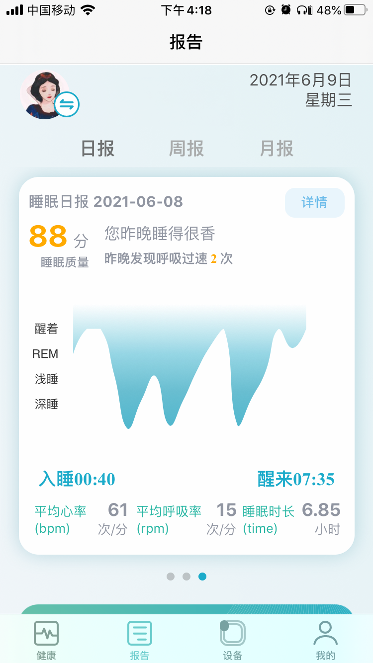 最新版本的艾守护app对功能模块进行了全面优化,将服务细分为睡眠监测、健康分析和定制方案三大板块。睡眠报告页面经过重新设计,简化了查看流程,用户进入APP即可直观查看所有睡眠数据。分析页面新增了健康快检和多维数据分析功能,帮助用户更全面地了解身体状况。方案页面会智能识别异常数据,并提供针对性的改善建议。设备页面新增了实时睡眠数据显示,我的页面则完善了会员权益体系,让服务分级更加清晰。