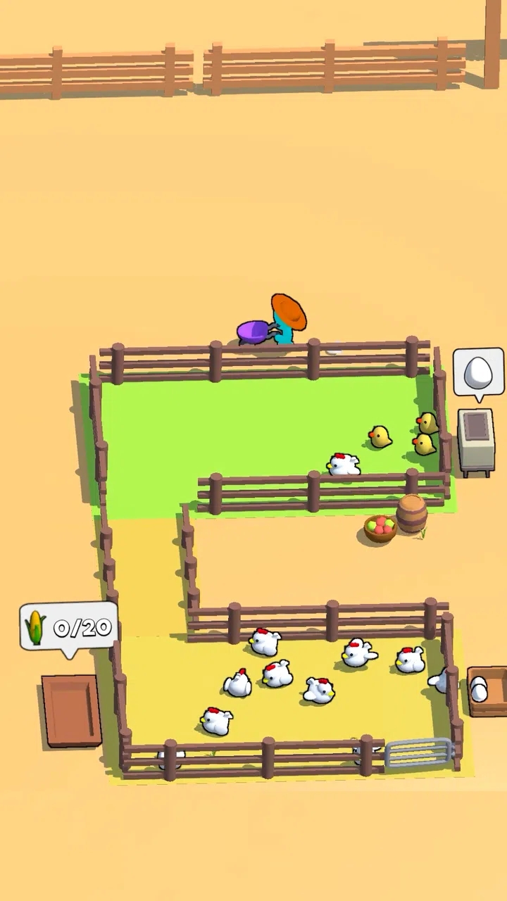 游戏提供专业的养殖区域划分功能,玩家可以根据需要规划不同功能的养殖区,如孵化区、成鸡区和产蛋区等。每天都能收获大量新鲜鸡蛋,看着仓库逐渐堆满劳动成果的成就感十足。系统还准备了各种实用道具,如自动喂食器、智能清洁机器人等,帮助玩家高效管理养鸡场。最具特色的是丰富的鸡种收集系统,从普通的白羽鸡到稀有的彩色鸡,每种鸡都有独特的习性和产蛋特点。通过精心培育和杂交,玩家还能培育出全新的鸡种,获得更高的市场价值。