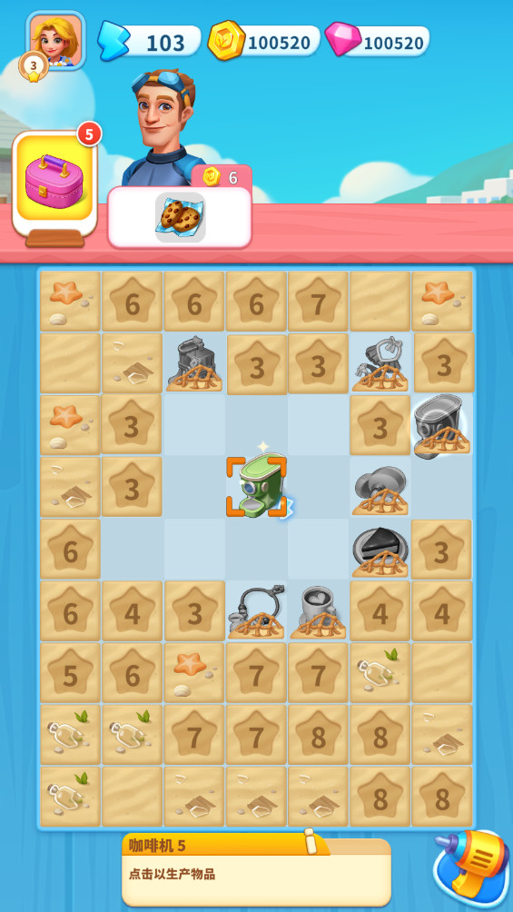 6.拖动两个相同的物品进行合成,合成后还会将附近的包装盒子打开,从而解锁更多的物品。这个机制增加了游戏的策略性,你需要考虑合并的位置和时机,以最大化收益。