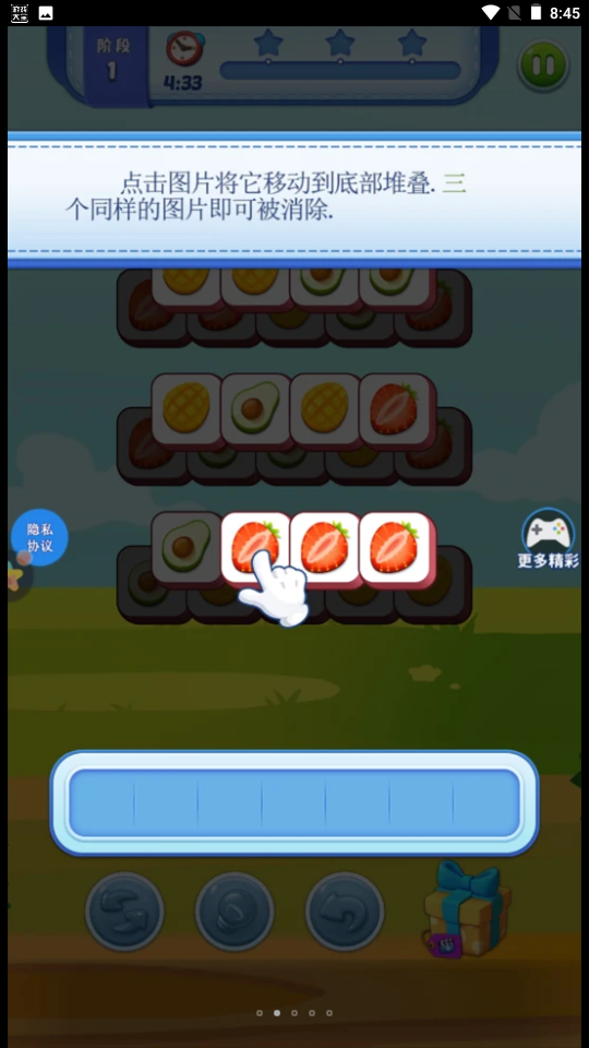 点击后系统会随机给出一组正确的组合。这个功能会智能分析当前局面,为您提供最有效的消除建议。