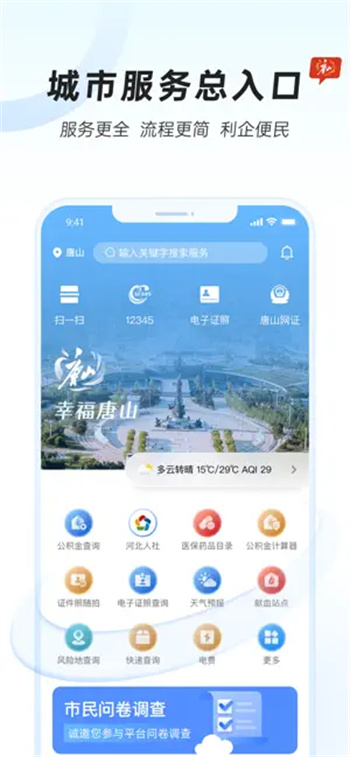 幸福唐山是一款专为唐山市民打造的一站式本地生活服务平台,致力于为用户提供便捷高效的智慧城市服务。该应用整合了民生保障、医疗健康、文体教育等多元化功能,让市民足不出户即可享受全方位的公共服务。无论是查询政策信息、缴纳生活费用,还是购买本地特色商品,都能通过平台轻松完成。幸福唐山以人性化设计和精准服务为核心,切实提升市民的生活便利度和幸福感,成为连接城市与居民的数字化桥梁。