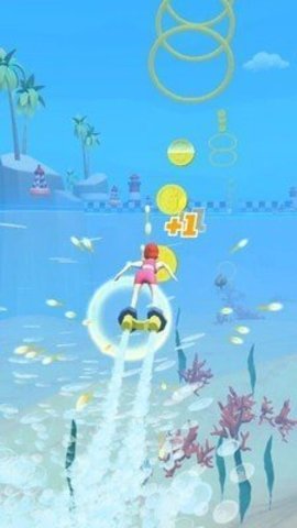 玩下载的游戏,可以利用惯性冲出水面,不断在空中收集金币,获得高分。