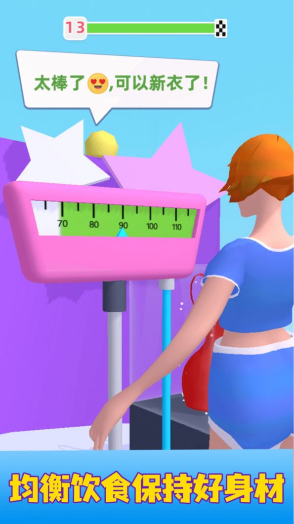 3、一起来解锁各种关卡吧,超有趣的挑战,你就是最强玩家。游戏支持多人联机模式,可以和好友一起比拼跑酷技巧,看看谁能保持最佳体重到达终点。每周还会更新特殊挑战任务,完成即可获得限定装扮奖励。