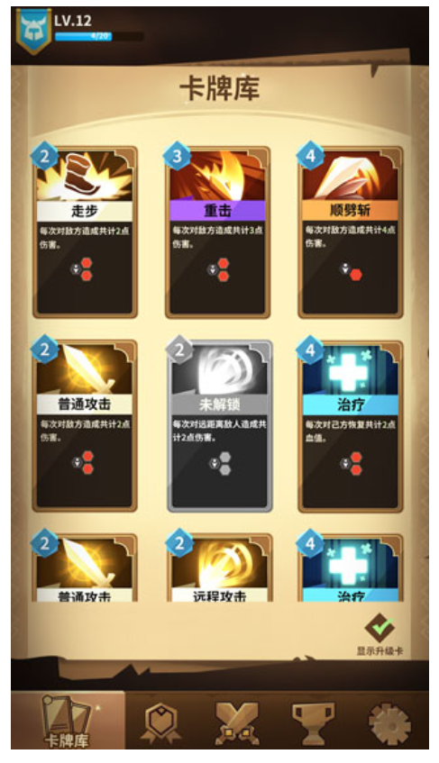 1、游戏提供超过200张功能各异的卡牌供玩家收集组合。随着冒险深入,玩家将解锁更多强力卡牌,通过自由构筑打造专属牌组。每场战斗后都可能获得新卡牌奖励,持续丰富玩家的战术选择,让闯关过程充满收集与强化的乐趣。